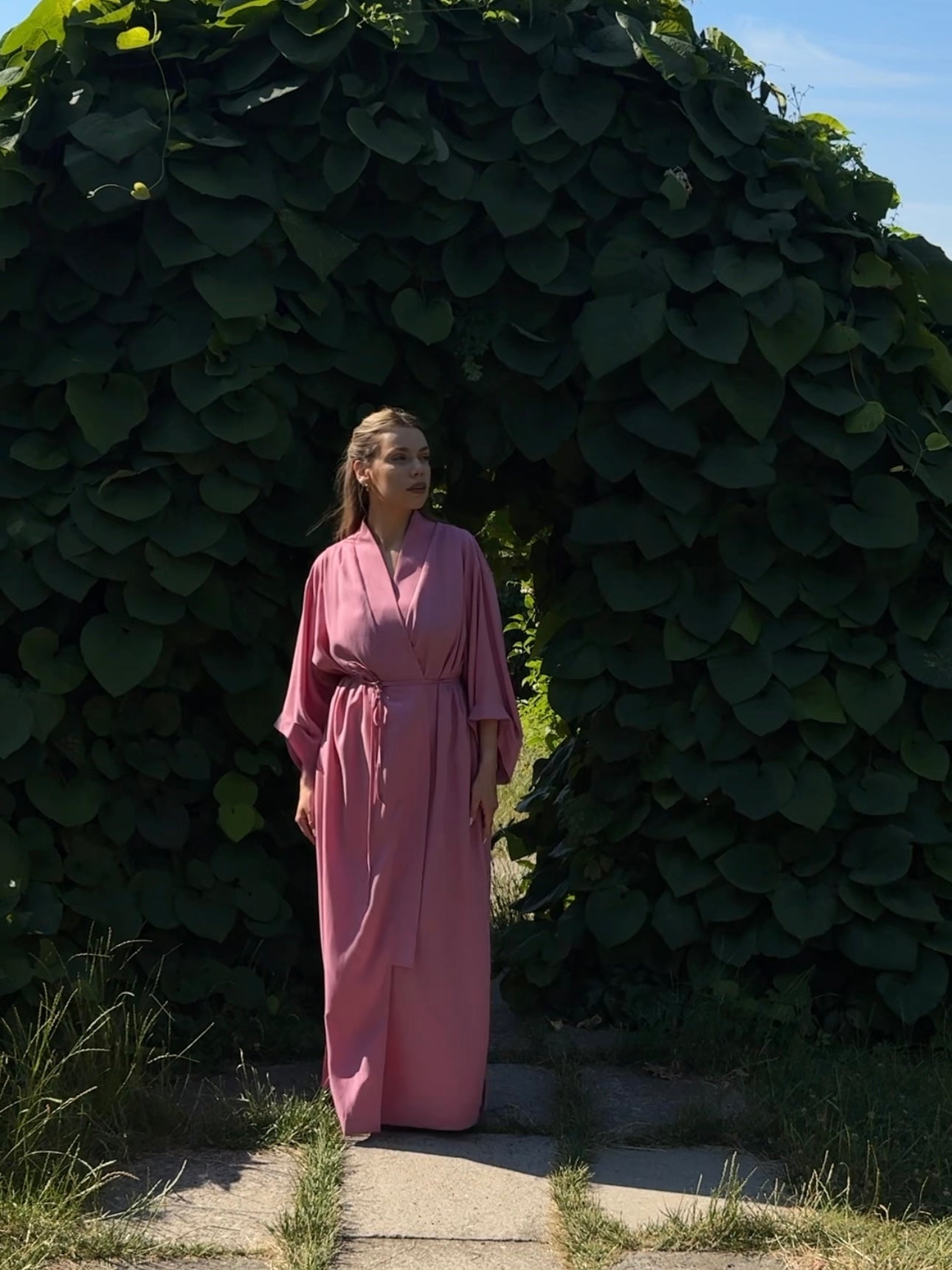 Eucalyptus kiss long kimono in pink