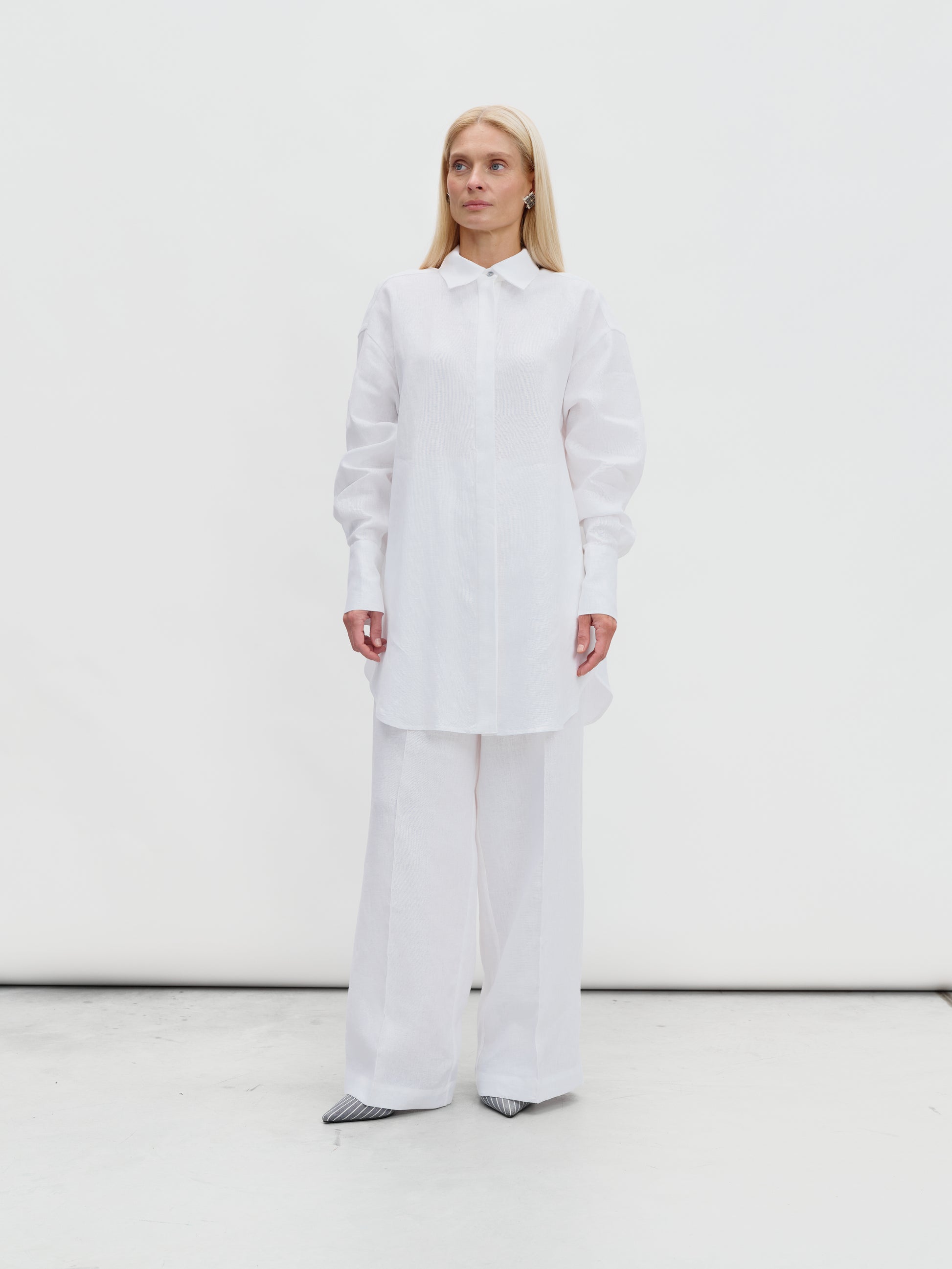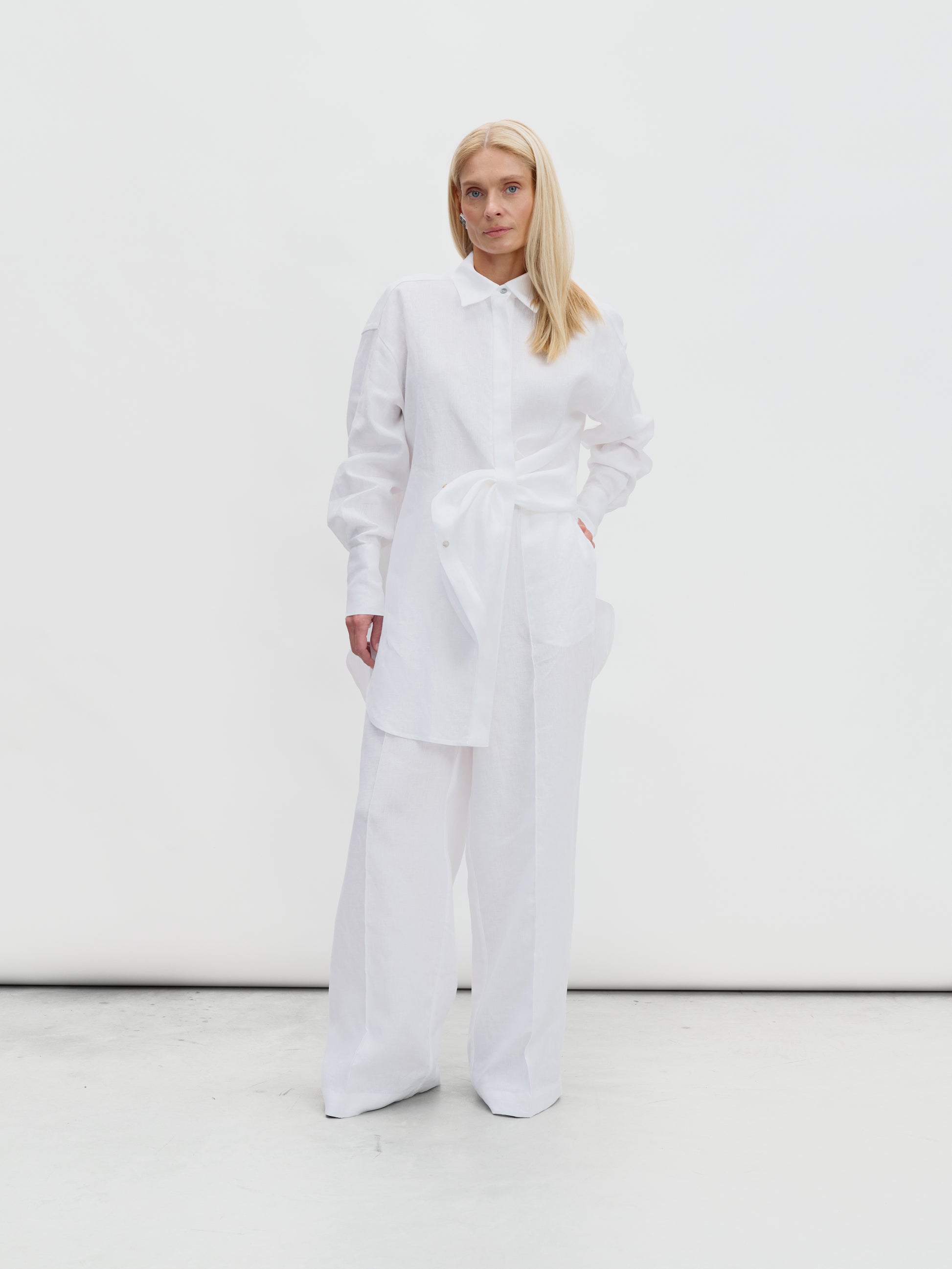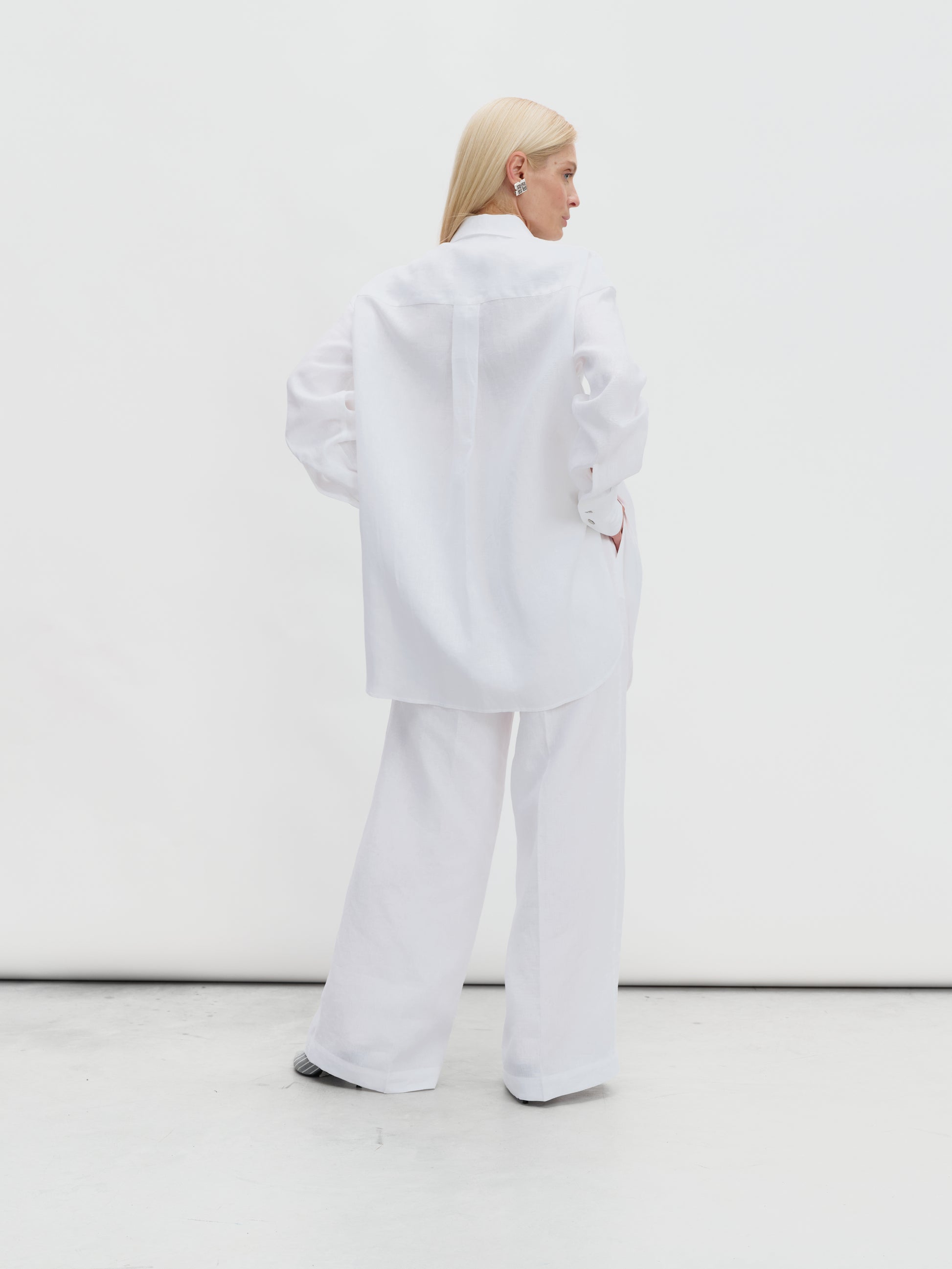 Linen suit with palazzo pants in white