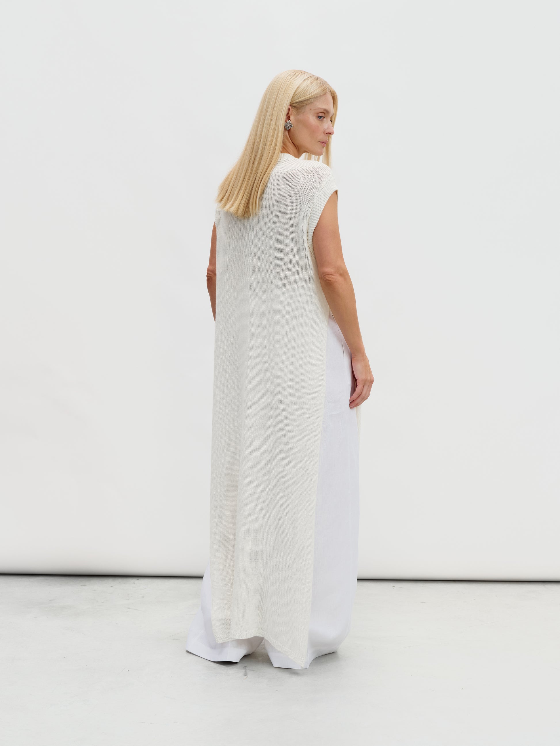 Вʼязана тініка із органічної бавовняної пряжі, з розрізами для зручності. Довжина виробу 126 см в єдиному розмірі (S-M-L)
